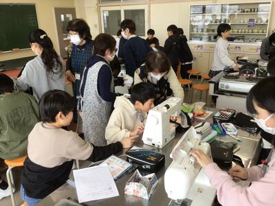 5年生が家庭科でエプロン作りに挑戦しました。学習支援ボランティアの皆様に見守りにより安全安心な環境で、思い思いのエプロンが作れたようです。ボランティアの皆様、ありがとうございました。