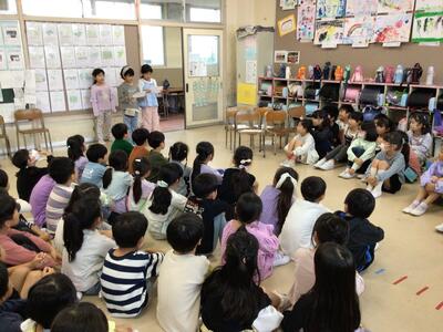 10月9日、生活科の学習で2年生が1年生を招待して「おもちゃまつり」を行いました。2年生は紙コップや電池、牛乳カップなど身近な物で作ったおもちゃで1年生に楽しんでもらおうと工夫して準備を進めてきました。いろいろなおもちゃコーナーで交流の輪が広がり、みんな笑顔で過ごすことができました。