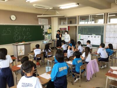 10月29日、社会福祉協議会・福祉サポーターにおいでいただき、キャップハンディ体験を行いました。子供たちは実際に体験することで、福祉についていろいろと考える機会となりました。