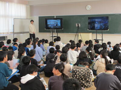 12月12日、高知県の四万十町立七里小学校とユネスコスクール交流会を行いました。それぞれの地域について、調べたことなどをお互いに発表し合い、有意義な交流の時間となりました。